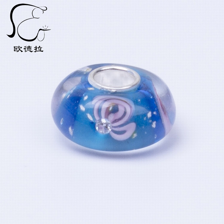 Item Name: S925 Sterling silver flower light Blue Murano Glass Zircon pave bead Item NO. EU381